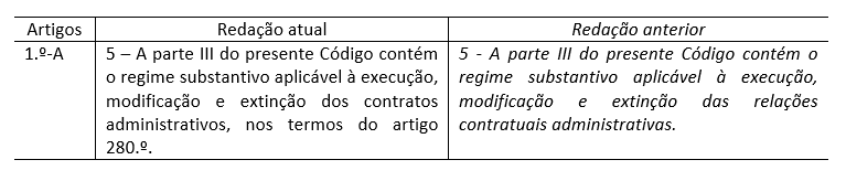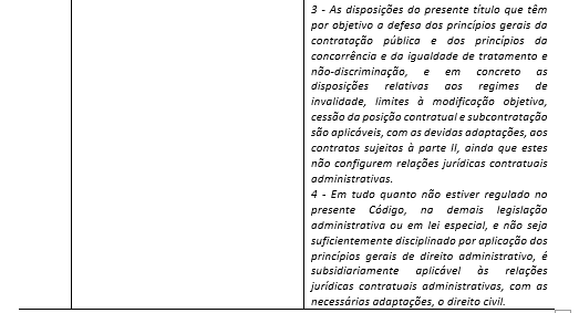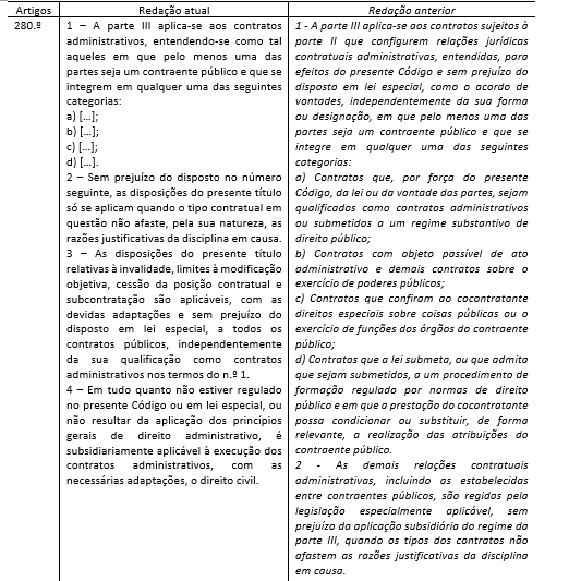 2. Analisado o disposto nos artigos 1.º-A e 280.º, constatamos que o legislador pretendeu especificar o âmbito de aplicação da Parte III do CCP aos contratos administrativos, retomando a importância dessa classificação, em prejuízo do objeto dos contratos públicos (relações contratuais administrativas):